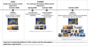 La nature complexe des processus liés aux feux de forêt et de végétation nécessite une stratégie d’observation multi-échelles. C’est la raison pour laquelle EUBURN se compose d’une série de campagnes de mesures pluriannuelles, couplées à la mise en œuvre et l’exploitation d’observations continues et à long terme en France, en Espagne et au Portugal depuis les insfrastructures de recherche ACTRIS, ICOS et IAGOS.